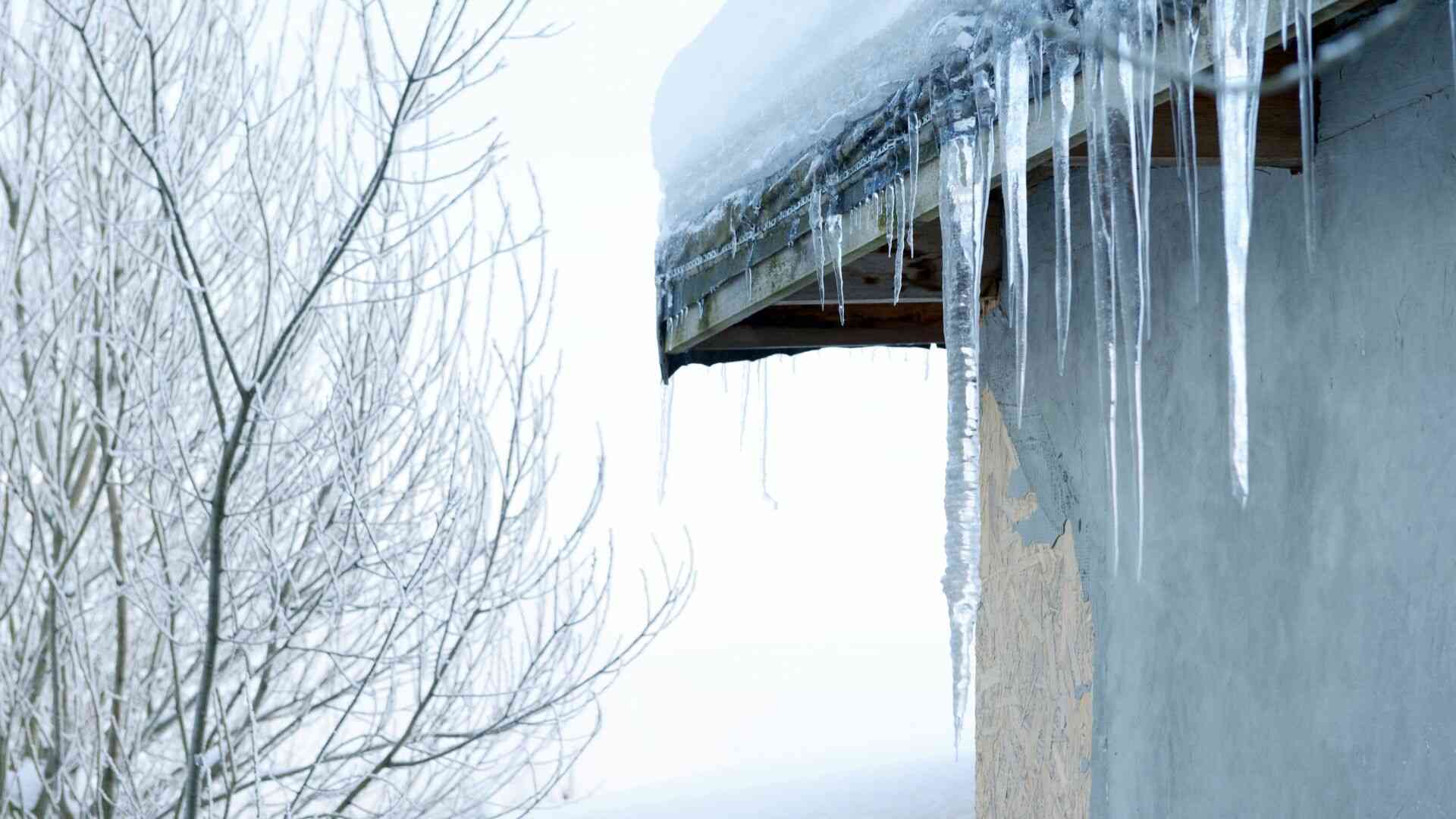 - Regularnie kontroluj dach, rynny, okapy i miejsca, gdzie tworzą się nawisy lodowe.